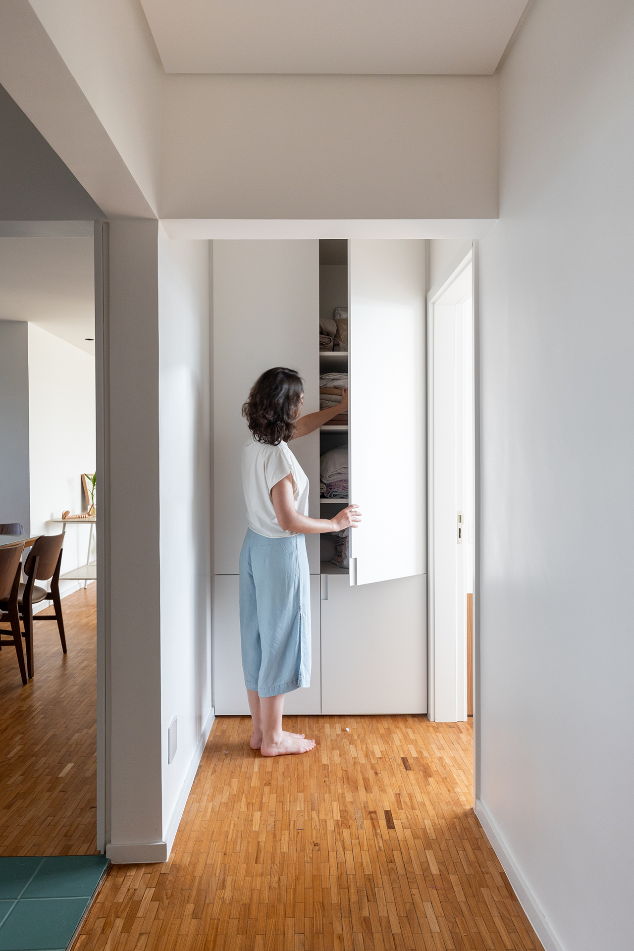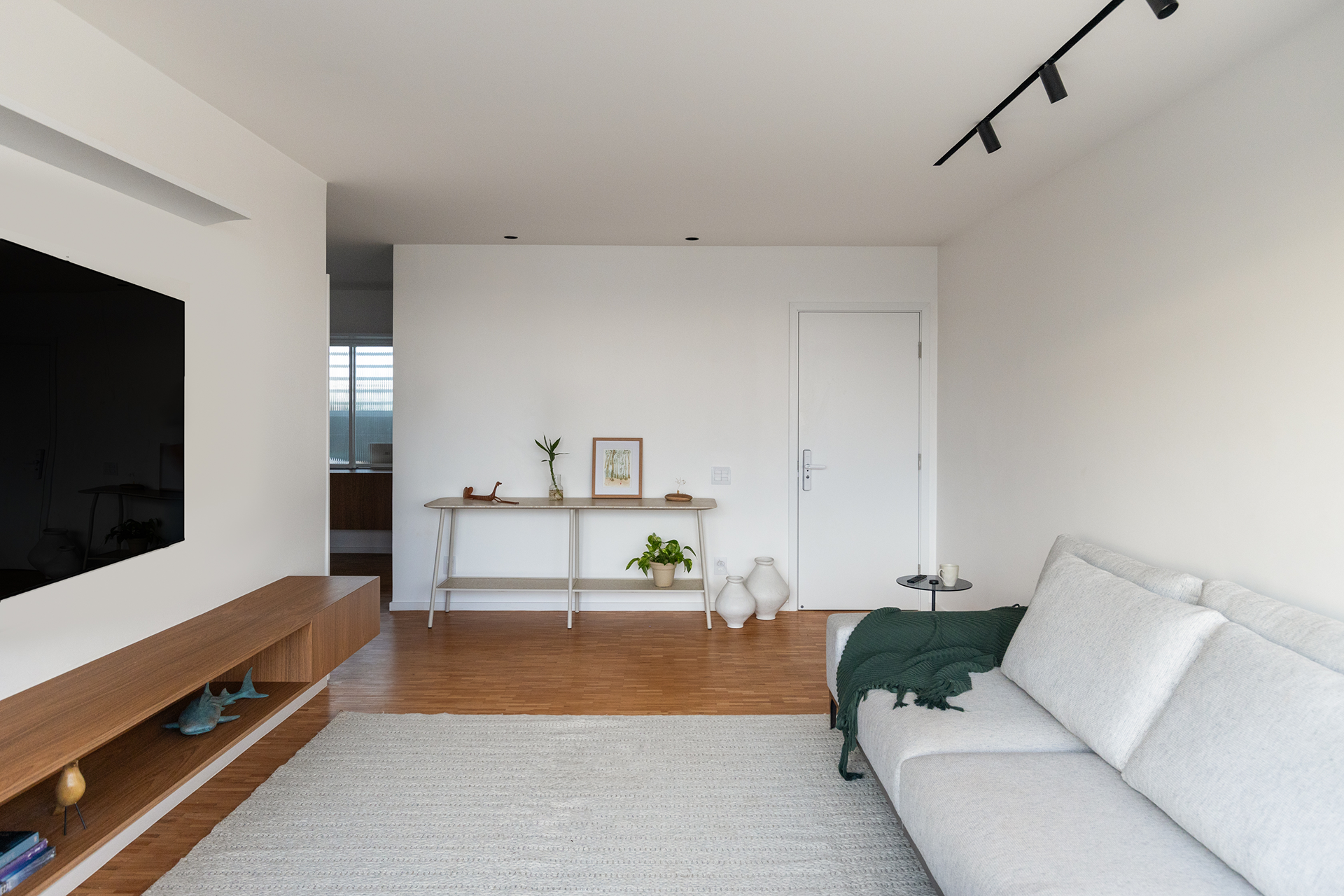 Este apartamento de 150m², localizado na escala residencial de Brasília, foi reformado para criar um ambiente confortável e acolhedor para uma família. O projeto contempla uma sala, dois quartos infantis, um banheiro, uma suíte, um escritório, uma despensa e uma lavanderia, todos dispostos para otimizar a funcionalidade e garantir o conforto dos moradores.