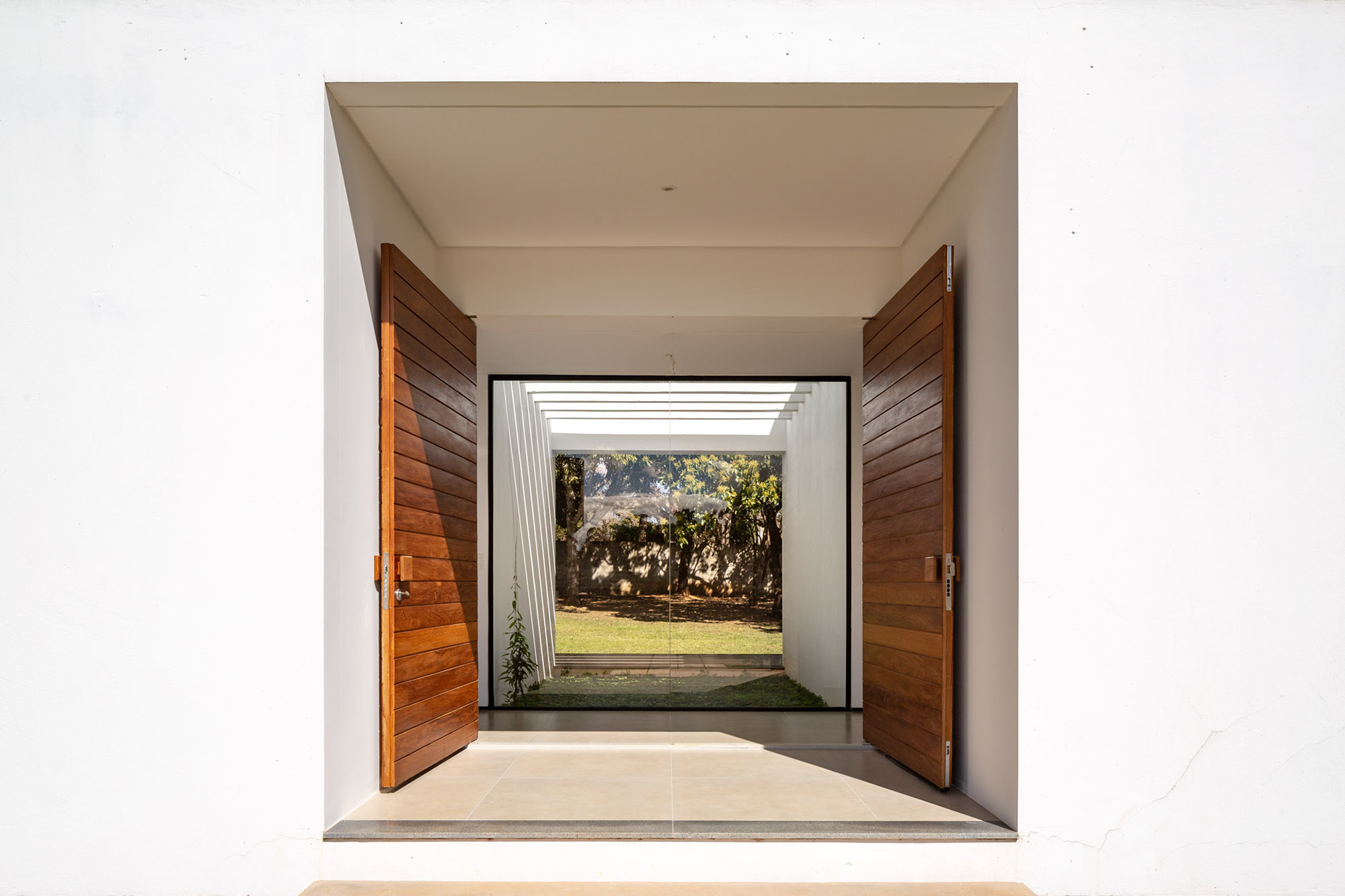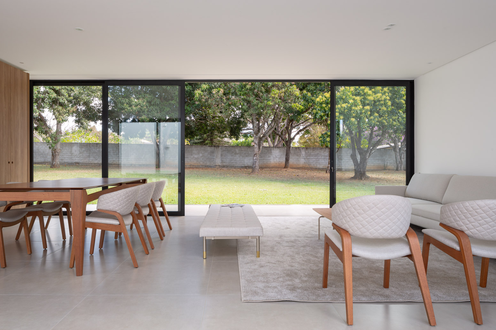 O objetivo do projeto, em consonância com os interesses dos proprietários, consistia em construir, de modo a ocupar adequadamente um terreno de grandes dimensões, 42 m de frente e 43,5 m de lateral, uma casa térrea com baixo custo de execução.