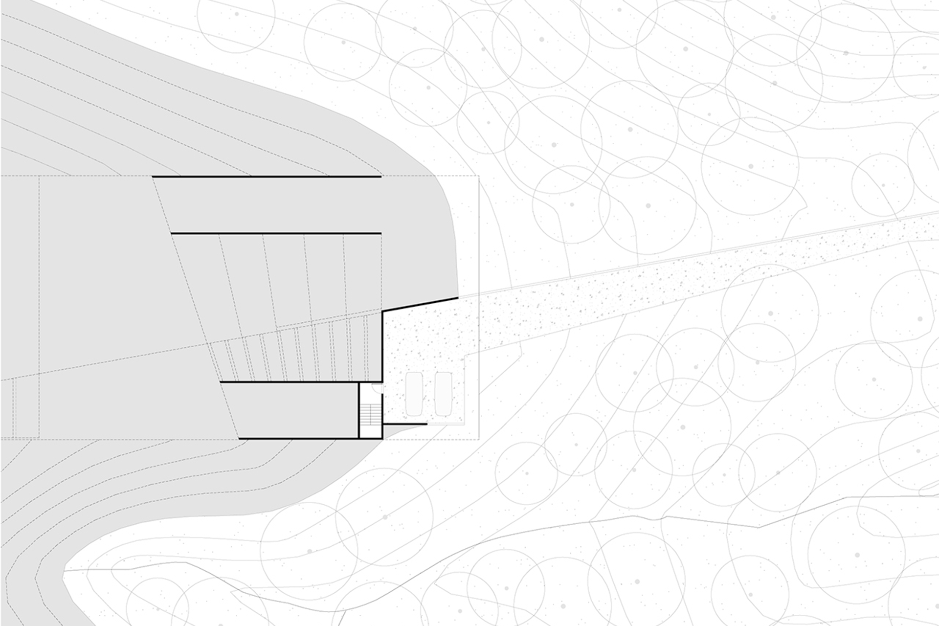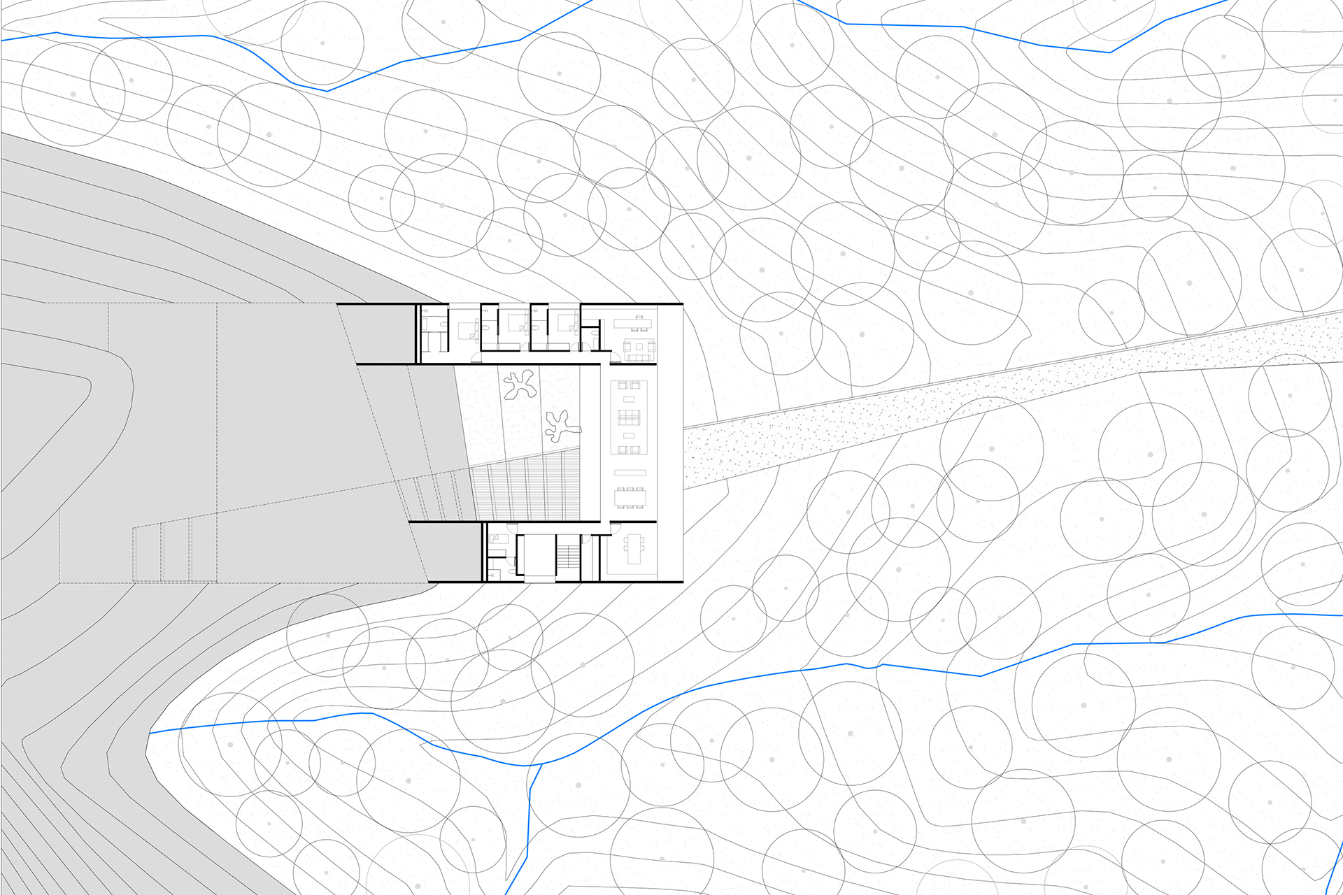 The house will occupy one of the regions of highest altitude in the plot, settling itself according to the given topographic conditions, as to privilege the rich landscape views that extend in the horizon.