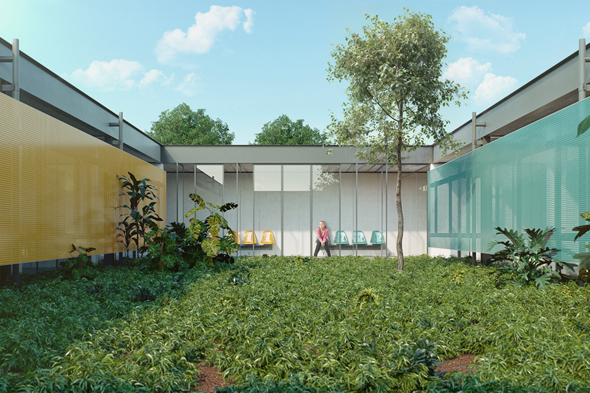 The aim was to design a healthcare facility characterized by fluid, permeable, and well-lit spaces with constant ventilation. Internal gardens were created between the care modules to foster a pleasant atmosphere, contributing to the rich interplay between filled and open spaces that define the building’s volumetric structure. These elements emphasize a democratic, open character that aligns with the concepts of humanizing hospital environments.