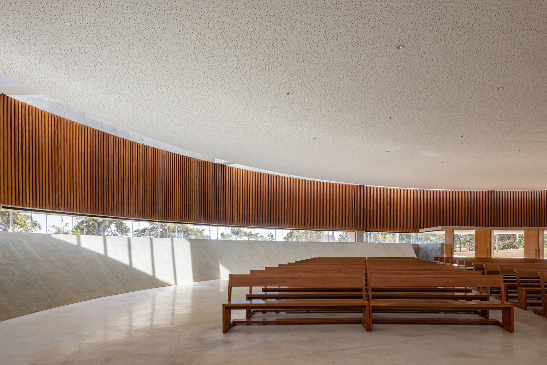 O partido adotado desdobra-se segundo a relação entre espiritualidade, natureza e comunidade. A espiritualidade comunica-se na religião católica através de seus ritos, celebrações e signos sagrados. O sentido de sagrado permanece e renova-se no contato sensível da natureza, que evoca a presença divina e a integração com o cosmos. Por sua vez, a arquitetura tem sido o espaço privilegiado de manifestação do sagrado por aquele que a ocupa, onde a luz penetra com delicadeza ou o silêncio da pedra manifesta-se no murmúrio das preces. A nave circular traz como conceito esse gesto de acolhimento quando aproxima o altar dos fiéis.